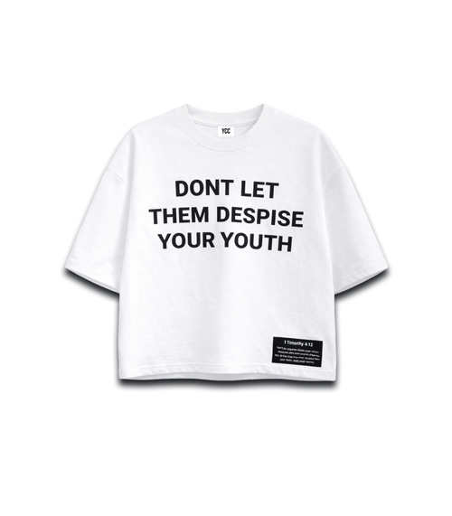 The “DONT LET THEM DESPISE YOUR YOUTH” Cropped Tee is made from 100% thick cotton for a structured, premium feel. Designed with a modern cropped fit, this piece delivers both comfort and durability.
